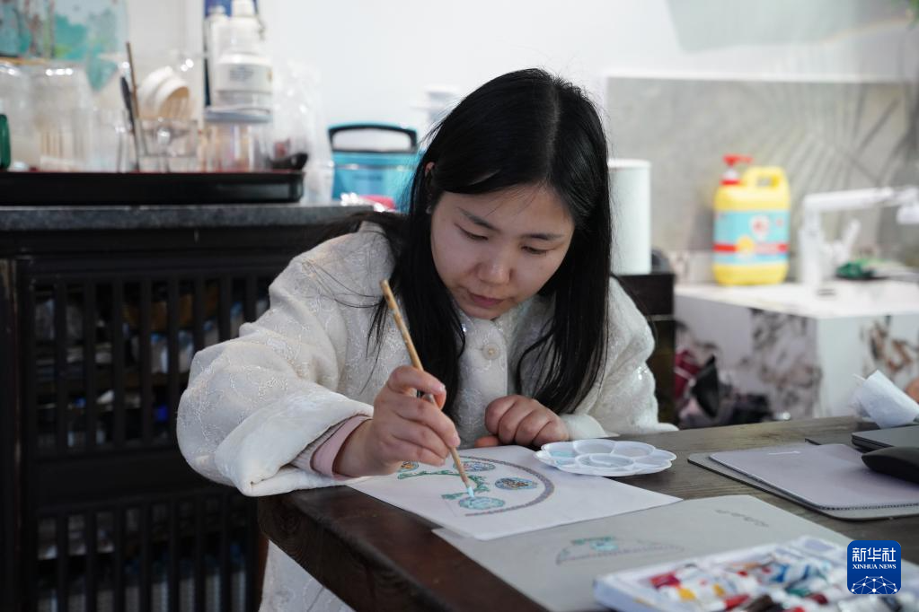 胡韵月在工作室创作(3月11日摄)。新华社记者 周密 摄pagebreak