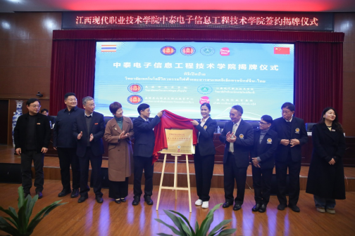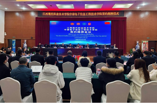 近日,江西现代职业技术学院、泰国东北部五区职业教育中心、龙婆坤技术学院、唐风国际教育集团举行四方合作签约暨中泰电子信息工程技术学院揭牌仪式。